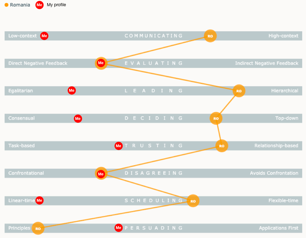 Luckily, I wasn’t the only one (nor the first one) to think about this challenge. Erin Meyer published on 2014 her book “The Culture Map: Breaking Through the Invisible Boundaries of Global Business” where —through engaging, real-life stories and anecdotes— she explains a field-tested model for decoding how cultural differences impact international business.